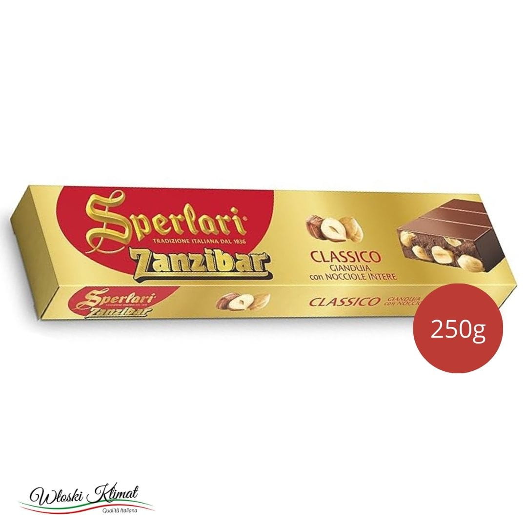 Sperlari Zanzibar Classico Gianduia to aksamitny i kremowy smak czekolady gianduja połączony z aromatycznymi orzechami laskowymi. Idealnie dobrane składniki tworzą niepowtarzalną całosć.