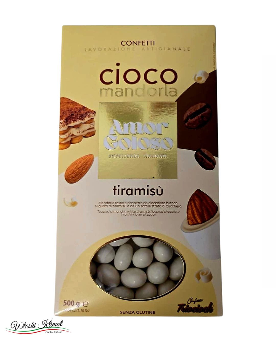 Maxtris Tiramisu to połączenie klasycznego migdała, czekolady o smaku włoskiego deseru Tiramisu oraz białej, lukrowej skorupki.