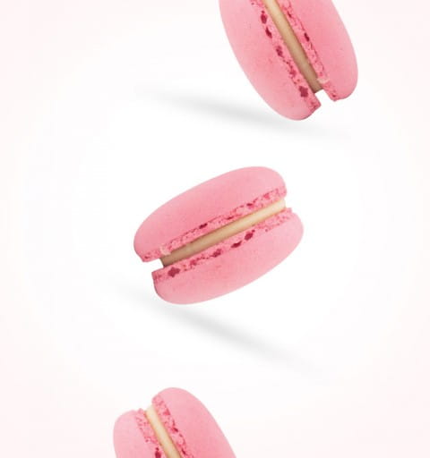 Odkryj nasze Macarons - wyrafinowane bezy stworzone wyłącznie z mąki migdałowej, cukru i białek jaj, wypełnione nadzieniem w postaci kremowego serca o smaku truskawkowym...