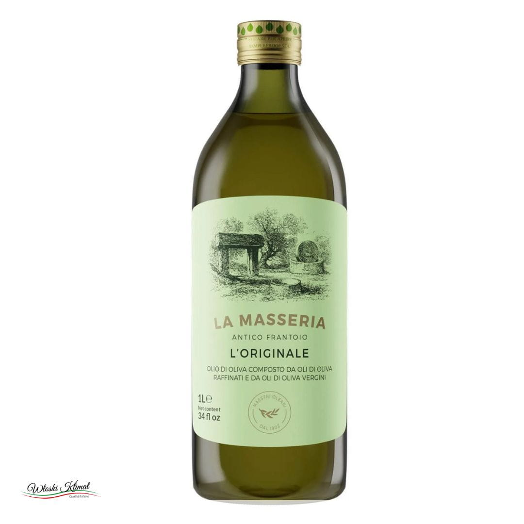 La Masseria L'Originale łączy w sobie oliwę z oliwek rafinowaną i oliwę z oliwek extra vergine, co daje produkt o pełnym i świeżym smaku, delikatnym aromacie i gęstym bursztynowym kolorze.