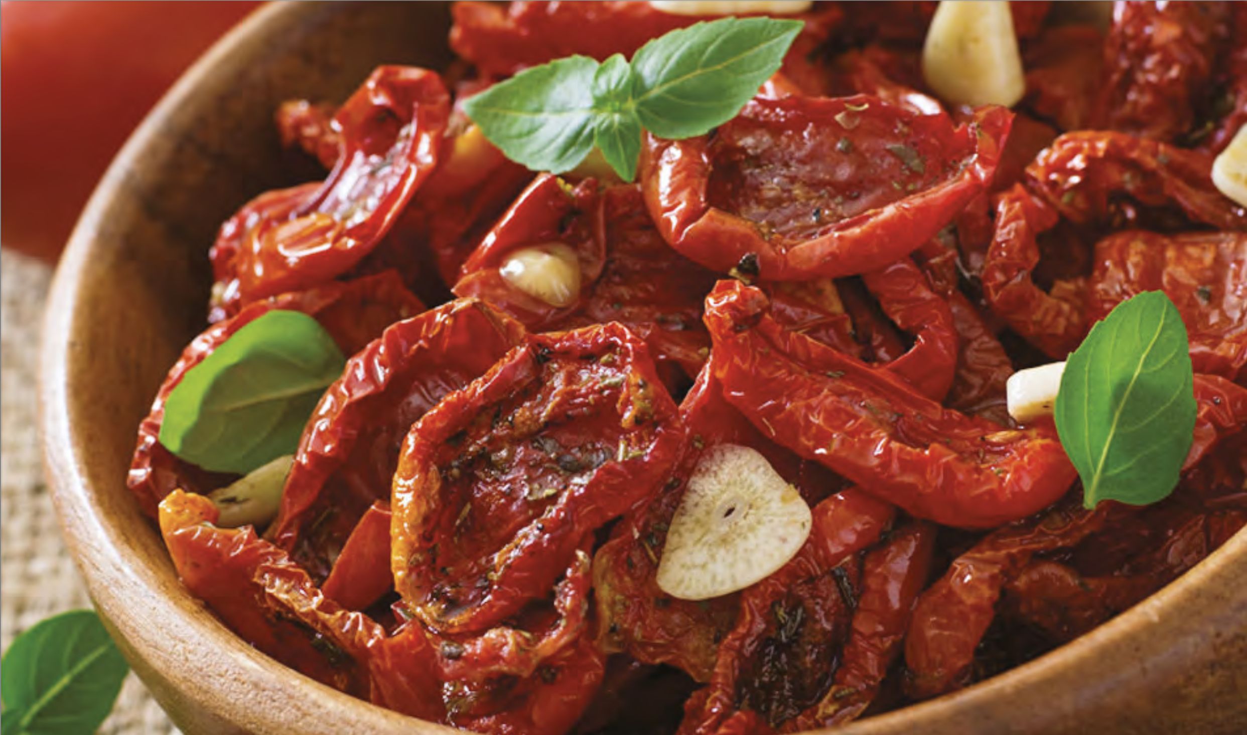 Starannie wybierane, najbardziej dojrzałe pomidory są zrywane, krojone na połówki i poddawane suszeniu. Ich niepowtarzalny smak i intensywny aromat zawdzięczany jest niezmiennej od lat, tradycyjnej recepturze. Konserwowane w oleju słonecznikowym, wraz z dodatkiem śródziemnomorskich ziół zapewniają niezwykłe doznania smakowe o każdej porze roku. Są idealnym dodatkiem do różnorodnych dań, sałatek oraz sprawdzają się jako przystawka.