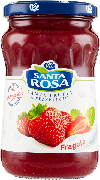 Santa Rosa Fragole to włoska konfitura truskawkowa z najwyższej jakości owoców. Kawałki wyśmienitych włoskich truskawek sprawiają, że konfitura jest pozycją obowiązkową na śniadanie. Świetnie komponuje się z pieczywem, jogurtami, śmietaną, jak również z ciastami i deserami.
