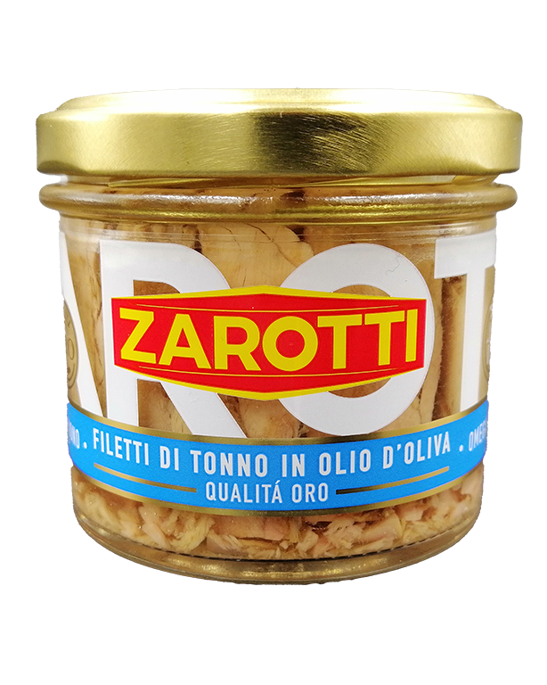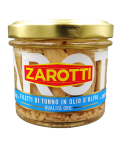 Filety z tuńczyka Zarotti to wysokiej jakości kawałki tuńczyka zakonserwowane w delikatnej oliwie z oliwek. Charakterystyczny smak i konsystencja jest wyczuwalna z pierwszym kęsem. Ręcznie pakowane do szklanych pojemników zapewniają doskonałą mięsistość i niezmienny aromat. Tuńczyk Zarotti jest żródłem białka oraz kwasów tłuszczowych Omega-3, które stanowią niezbędny element zdrowego żywienia. Idealny dodatek do sałatek, różnorodnych dań oraz przystawek.